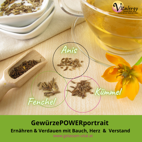 Gut bei Verdauungsschwäche, Blähungen, Durchfall, Milchbildung in der Stillzeit, schmerzhafte Regelblutung, Gallenkolik, Libidomangel, Erkältungen mit Schleim