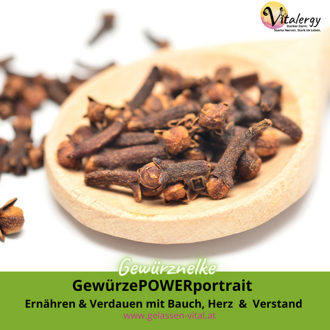 Nelken-Tee hilft bei Magen-Verstimmungen oder auch bei Zahnschmerzen, dazu am besten eine Gewürznelke kauen. Sie revitalisieren auch die Nieren und die Nebennieren und regen ihre Funktionen an. Sie vertreiben innere Kälte, lösen Stauungen, öffnen Gefäße und helfen den Nieren, körperfremde Stoffe loszuwerden. Sie wirken schmerzstillend, keimtötend und antiseptisch. Diese aromatischen Knospen tragen das Prinzip der Kreativität und Aktivität (Energie) in sich.
