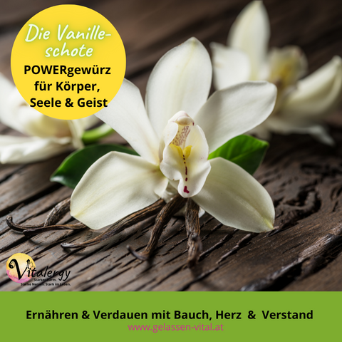 Aber Achtung: Vanillin kann auch künstlich aus Abfallprodukten der Papierherstellung oder aus Eugenol, z.B. im ätherischen Nelkenöl enthalten, hergestellt werden. Am besten schmeckt aber natürliches Vanillemark. Dazu die Schote längs halbieren und das Mark mit einer Messerspitze heraus schaben oder die Schoten einfach mit kochen. Die Wirkung von Vanille ist beruhigend, harmonisierend und wohltuend für die Verdauung.